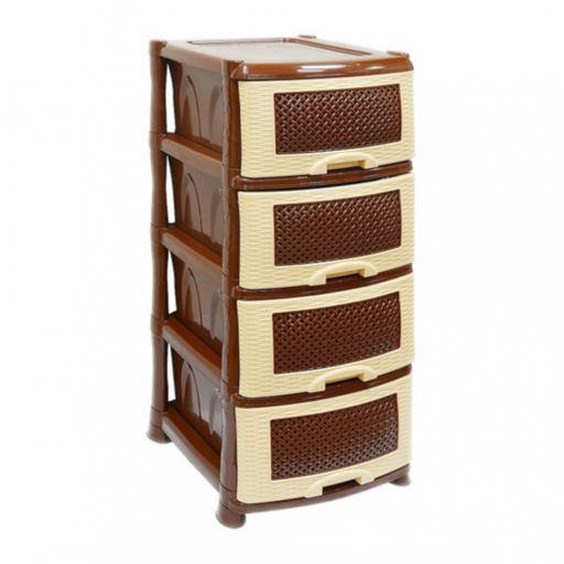 Комод из пищевого пластика с четырьмя выдвижными ящиками предназначен для хранения вещей и продуктов питания и гармонично впишется в интерьер любой комнаты. Легкий и вместительный комод поможет обеспечить порядок, избавит от разбросанных игрушек или одежды, убережет продукты от пыли и заветривания. Узор на передних панелях придаст индивидуальность и подарит настроение. Не рекомендуется размещение пластикового комода вблизи батарей центрального отопления и электрических обогревателей.