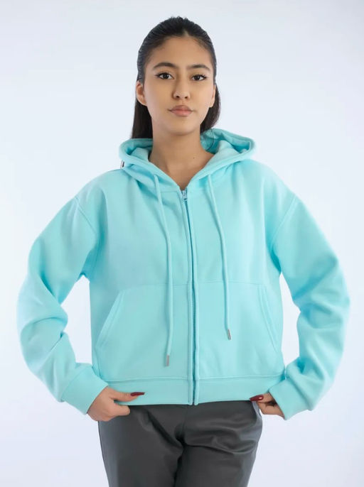 • K12740 Толстовка на молнии с капюшоном OVER SIZE (плотный хлопок) БИРЮЗОВЫЙ