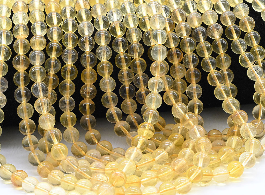 Бусины из флюорита жёлтого шарик 6мм, 40см, 63 бусины Радуга камня