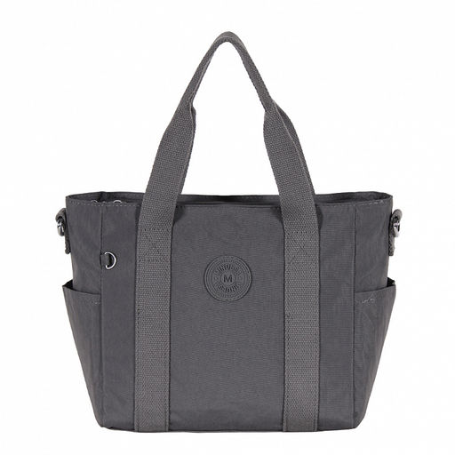 Сумка, выполнена из текстиля. Декорирована логотипом на передней части. Дополнена серебристой фурнитурой. Данная модель закрывается на молнию, носится в руке или на плече. В комплекте есть ремень съемный с регулировкой длины. Каркас мягкий.