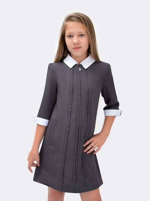 Платье для девочки Соль&Перец. Изящное, школьное платье свободного кроя. Декор вертикальными вытачками и складками спереди зрительно удлиняет фигуру. Вшитые подплечники подчёркивают линию плеч. Модель застёгивается на молнию сзади.