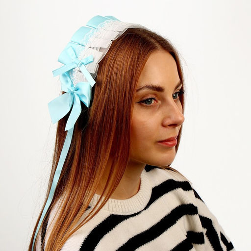 Карнавальная повязка Лолита, голубая с белым кружевом