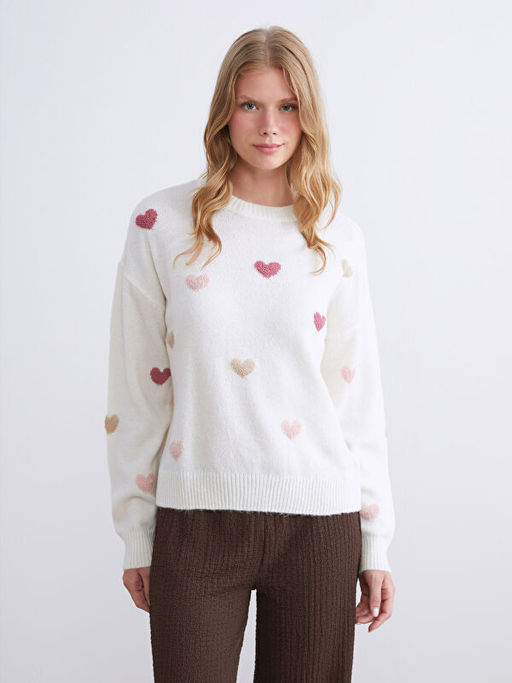 • Bisiklet Yaka Desenli Kad?n Triko Kazak