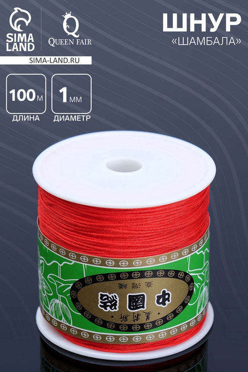 Шнур Шамбала длина 100 м, d=1 мм, ярко-красный