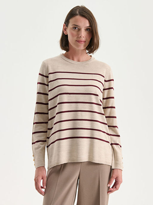 Bisiklet Yaka ?izgili Kad?n Triko Kazak