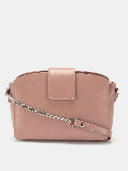 Стильная женская сумочка из высококачественной натуральной кожи в нежной розовой гамме. Модель миниатюрных размеров оснащена плечевым ремнем-цепочкой и застежкой клапаном на скрытом магните. Внутреннее пространство представлено тремя отделениями: основное по центру застегивается на молнию и два открытого типа. Подкладка выполнена из плотной ткани, фурнитура из металла серебристого цвета. Аксессуар соответствует актуальным модным тенденциям и станет неотъемлемой частью ваших современных образов.