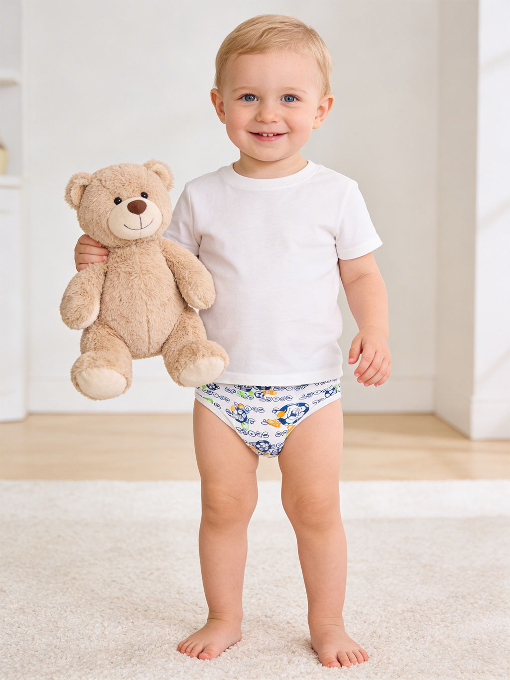 • Трусы для мальчика белые принт оранжевый мяч