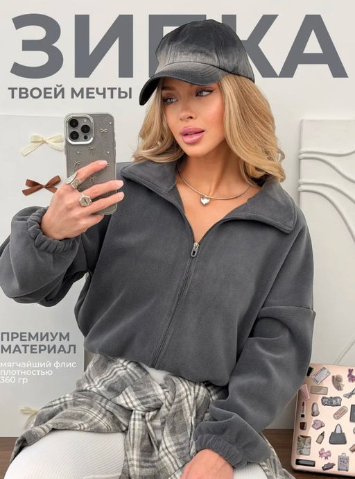 • K13389 Толстовка из флиса на молнии ГРАФИТ