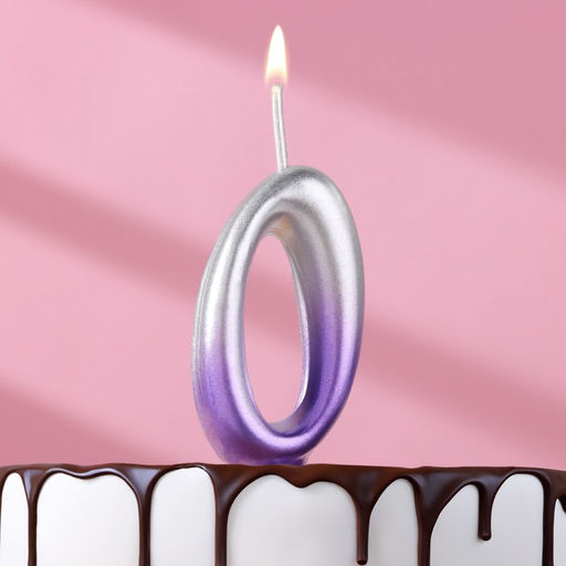 Свеча для торта «Овал», цифра 0, 5.5 см, серебро-сирень