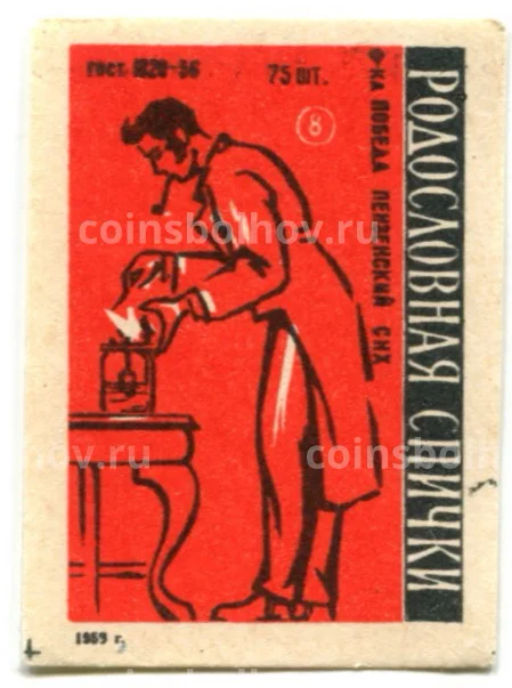 Этикетка спичечная Родословная спички № 8 фабрика Победа
