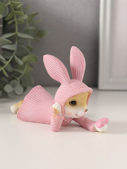 Фигурка полистоун Зайка в вязаном розовом платьице, смотрит на сердечко, 12.5?5.5?8 см