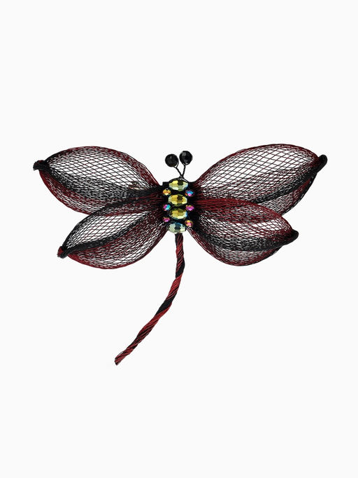 • Брошь «Стрекоза», плетёная, бордово-чёрная
