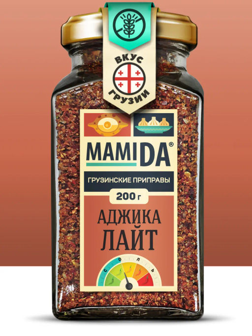 Аджика ЛАЙТ создана нами для тех, кому нравится традиционный аромат аджики, но не нравится её сильная острота. Аджика ЛАЙТ дарит блюдам насыщенный грузинский аромат, но по сравнению с классической аджикой, обладает меньшей остротой. Традиционно используется с мясом и рыбой, но её можно смело добавлять в супы, овощные блюда, блюда из макаронных изделий и вообще куда угодно! Специи и приправы МамиДА - лучший подарок на любой праздник для ваших любимых!