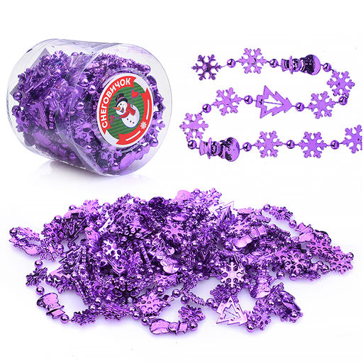 • Новогоднее украшение "Бусы" 5м, сиреневые, в банке