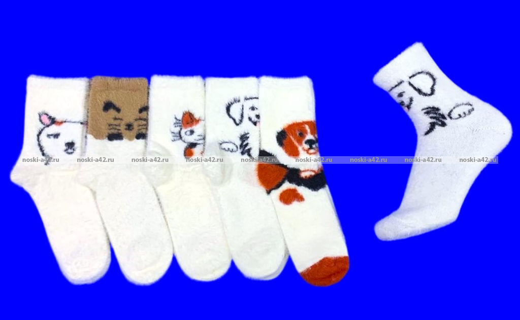 • 5 ПАР - Байвей термоноски женские ангора НОРКА ШЕРСТЬ "Мордочки" арт. 3561