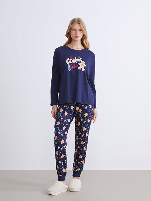 Kurabiye Adam Bask?l? Kad?n Pijama Tak?m?