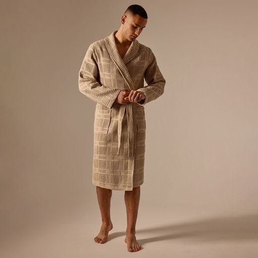 • Халат вафельный мужской SL HOME: Chess «Саббиа», размер S, хлопок 100%, коричневый
