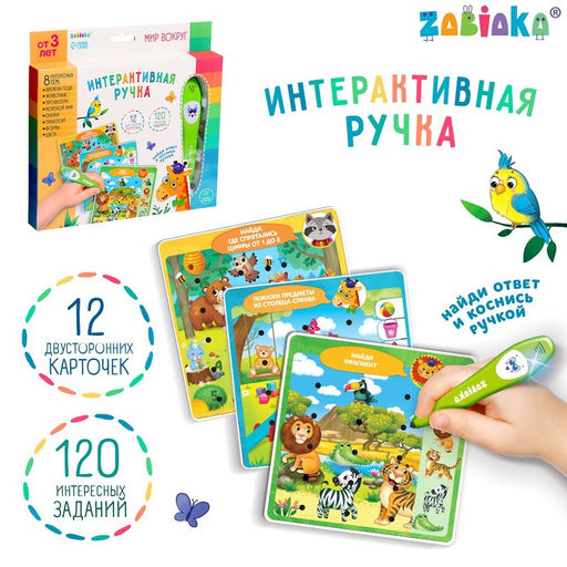 Умная игрушка «Мир вокруг» поможет в развитии логики, моторики, внимания, воображения, памяти.С игрушкой ребёнок откроет много нового и интересного про животный мир, профессии, формы, цвета и многое другое! Также малыш научится правильно держать ручку в руке.В набор входит 12 двухсторонних обучающих карточек. На них малыша ждёт 120 заданий. Каждая карточка посвящена одной определённой теме.8 темВремена года.Животные.Профессии.Морской мир.Сказки.Транспорт.Формы.Цвета.Когда ребёнок коснется ручкой чёрного кружка на выбранном ответе — он услышит, правильно ответил или нет. Для кого: Унисекс. Возраст: От 3 лет. Количество батареек: 2. Звук: Да. Свет: Да. Развитие навыков: Внимание. Развитие навыков: Кругозор. Развитие навыков: Логика. Развитие навыков: Память. Развитие навыков: Моторика. Развитие навыков: Фигуры, цвета. Дополнительные функции: Звуковые эффекты. Дополнительные функции: Светящаяся. Типоразмер батареек: AAA. Тема обучения: Развитие моторики. Тема обучения: Развитие логики/мышления. Тема обучения: Развитие памяти. Тема обучения: Цвета, формы, звуки. Тема обучения: Окружающий мир. Батарейки в комплекте: Нет. Бесплатная доставка: Да. Наша разработка: Да. Размеры товара: 3.5/2/15.5.