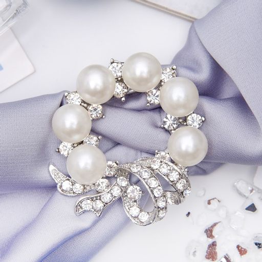 • Зажим для платка «Жемчужный бант», цвет белый в серебре