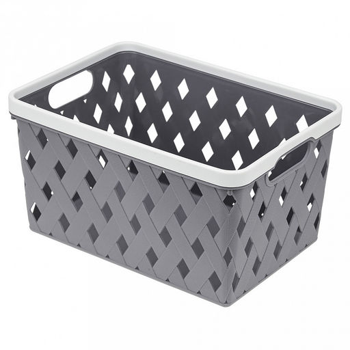 • "Домашняя мода" Корзина пластмассовая для хранения "Плетенка-Ромб" 25х18см h14см, с ручками, серый (Китай)