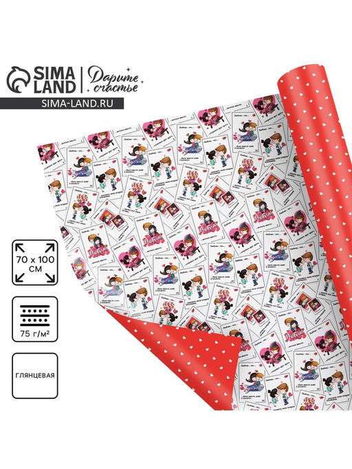 • Цена за 10 шт. Бумага упаковочная глянцевая двухсторонняя Любовь это..., 70?100 см