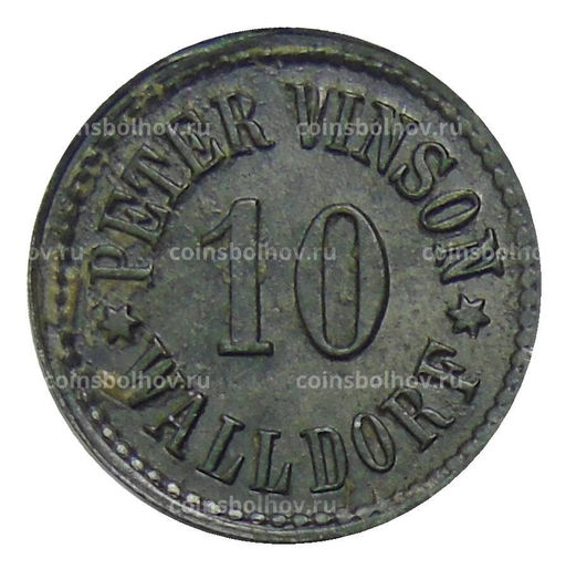 Монета 10 пфеннигов Германия Нотгельд Валдорф (Питер Винсон)
