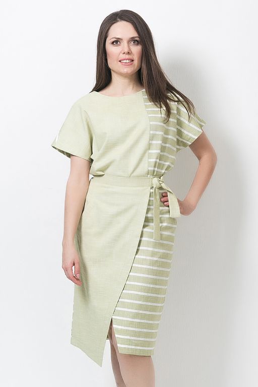 Состав: 60% хлопок, 35% ПЭ, 5% эластан. Длина изделия: . Юбка на поясе из хлопка с запахом. Дизайнерское решение: расположение кармана с листочкой справа и совмещение двух принтов. На поясе декоративная завязка.