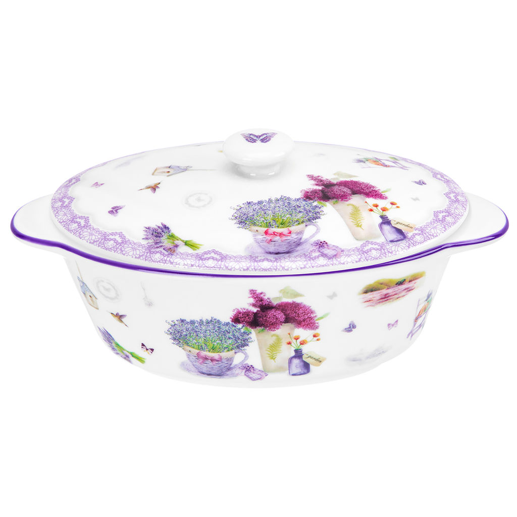 Жюльенница-кокотница 250 мл 16*10*8 см "Лаванда" овальная с крышкой, фарфор NEW BONE CHINA