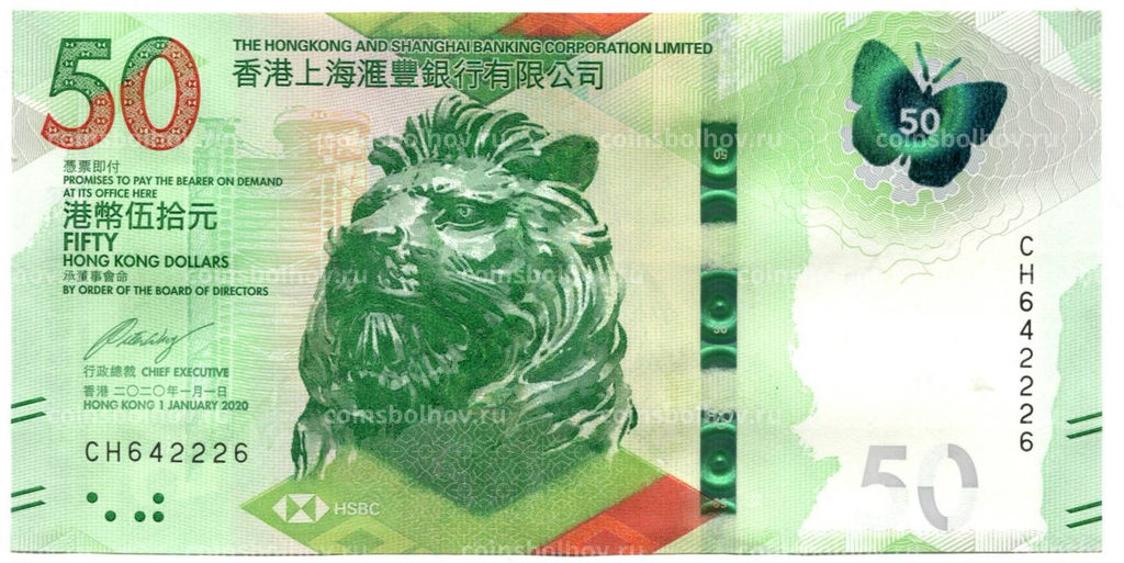 Банкнота 50 долларов 2020 года Гонконг HSBС
