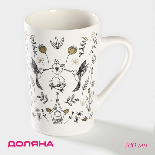 • Кружка Доляна «Колибри», 380 мл, фарфор, цвет белый