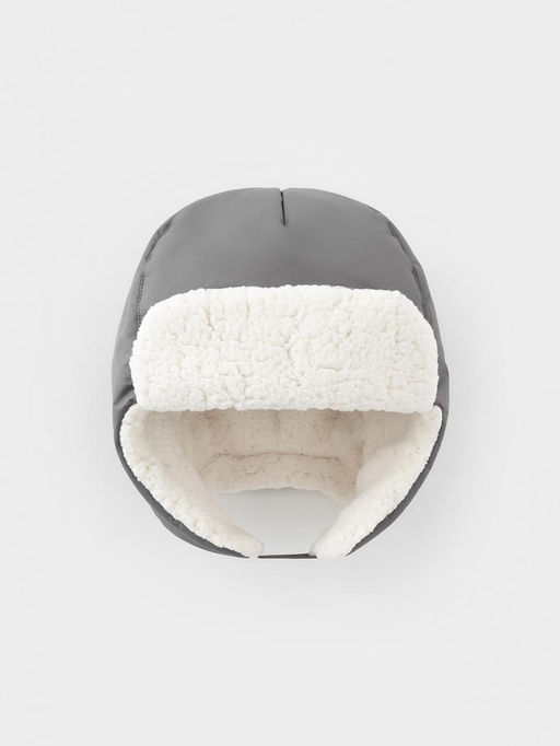 Зимняя шапка детская из однотонной мембранной ткани. Внутри искусственный утеплитель и подклад из мягкого длинноворсового флиса. Застёгивается под подбородком на липучку. Спереди отворот на липучке. На затылке эластичная резинка. Сбоку прикреплён светоотражатель.. Состав: верх: 80% полиэстер, 20% полиуретан; подклад: 100% полиэстер; утеплитель: 100% полиэстер