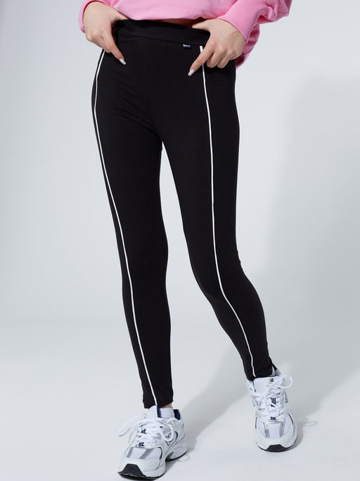 Лосины для девочки из трикотажного полотна,плотно облегающие ноги. Пояс с эластичный тесьмой внутри. Кант контрасного цвета на передних половинках. Состав:92% хлопок, 8% лайкра