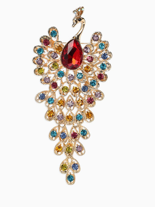 • Брошь «Жар-птица» волшебная, стразы, цетная в золоте