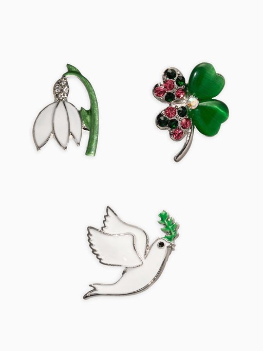 • Броши "Голубь, клевер, подснежник" (набор 3шт), цветной в серебре