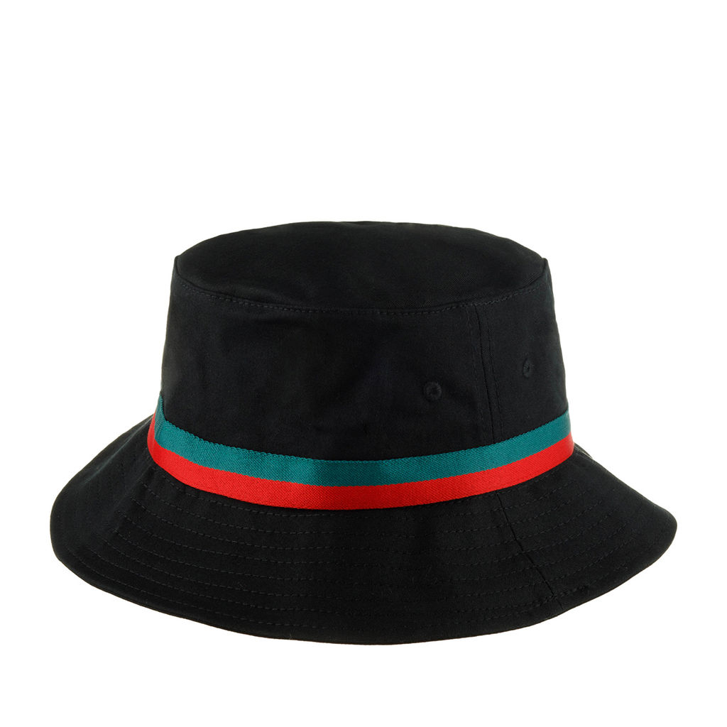 Черная панама от южнокорейского бренда FLEXFIT. Модель выполнена из плотного материала, в составе - хлопок и эластан. Акцентная деталь - шелковистая красно-зеленая лента на тулье. Для вентиляции предусмотрены пара люверсов по бокам. Поля многократно прострочены. Внутри по окружности головы вшита белая эластичная шелковистая лента. Глубина – 11 см, ширина полей – 5,5 см. Панама подбирается в соответствии с таблицей размеров.