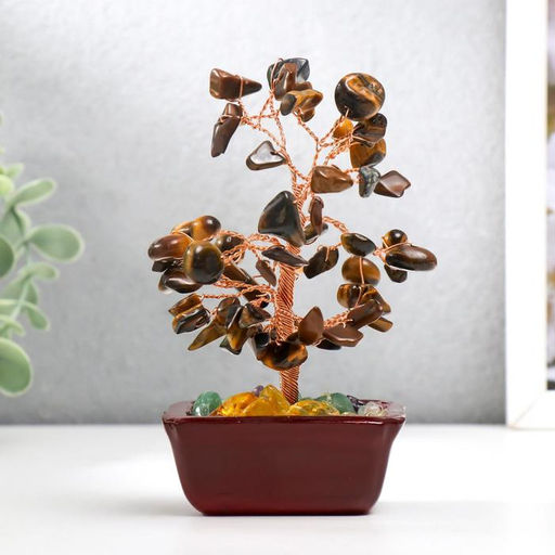 • Бонсай декоративный 60 камней «Денежное дерево с тигровыми кристаллами», 13×7×5 см