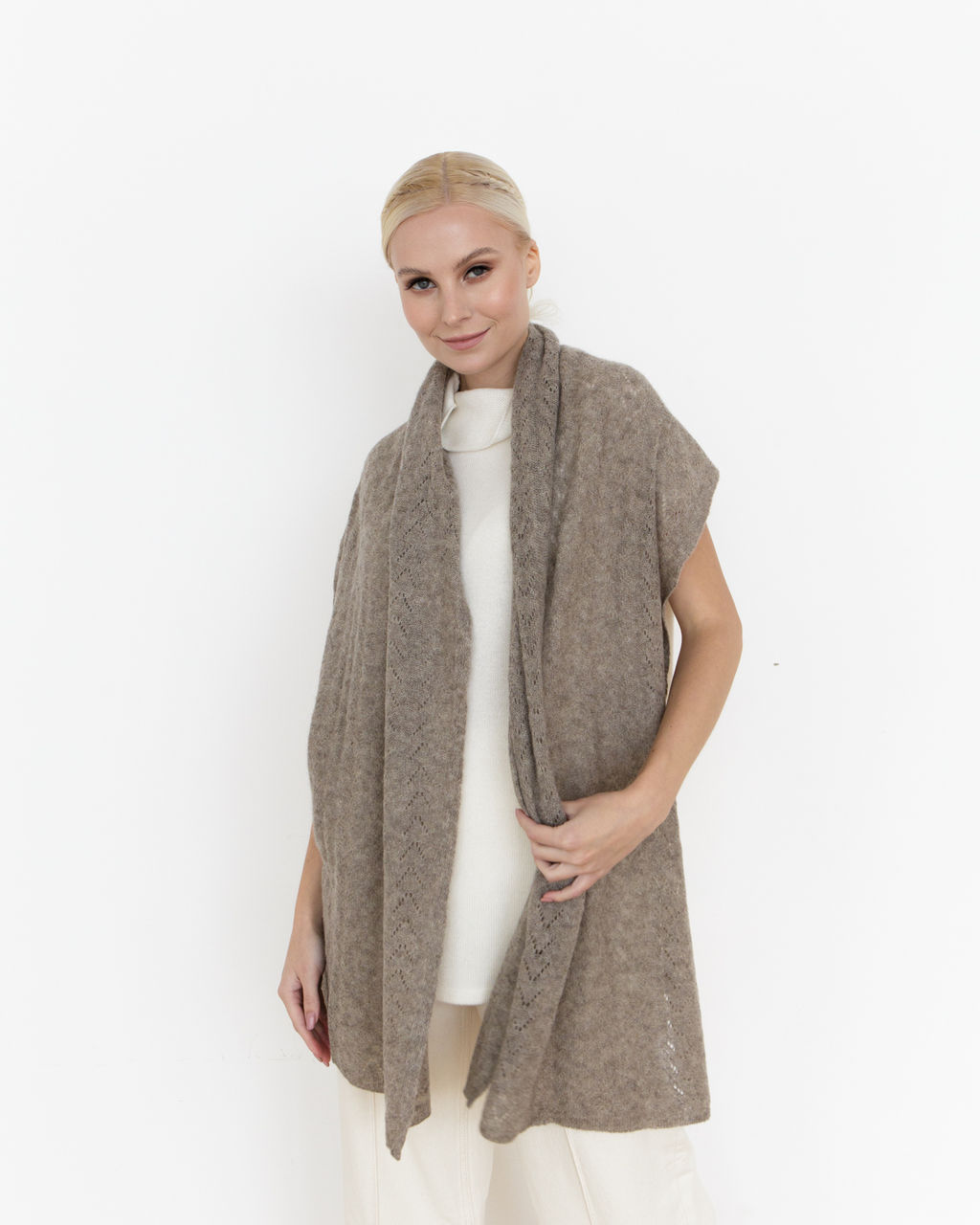 Шерсть яка славится своими уникальными теплоизоляционными свойствами и является отличным выбором для создания изделий, которые защищают от холода и одновременно выглядят стильно. Палантин можно носить как шарф, накидку или использовать в качестве уютного пледа, что делает его универсальным аксессуаром для любого случая. Размер составляет 60*170.­