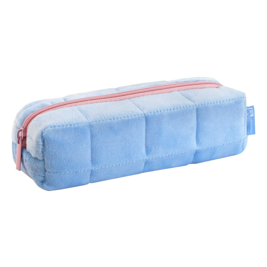 Пенал школьный Феникс+, арт.68358/ 24 ГОЛУБОЙ СТЕГАНЫЙ (без наполнения, 19.5х5.5х6.5 см, полиэстер "Плюш", молния, стёганая строчка, ПЭТ-пакет).
