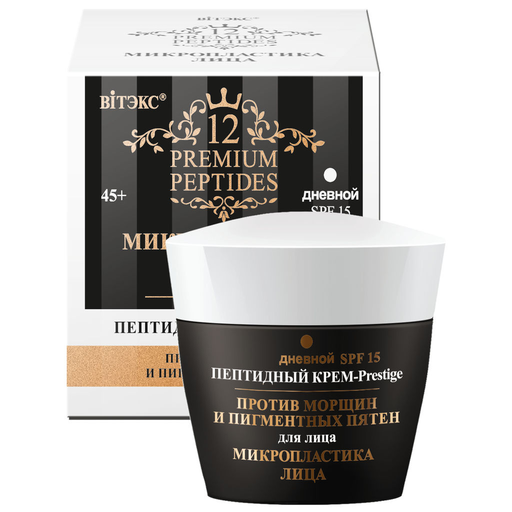 Описание товара Витекс МИКРОПЛАСТИКА ЛИЦА Пептидный Крем-Prestige для лица,SPF15, дневной, 45мл