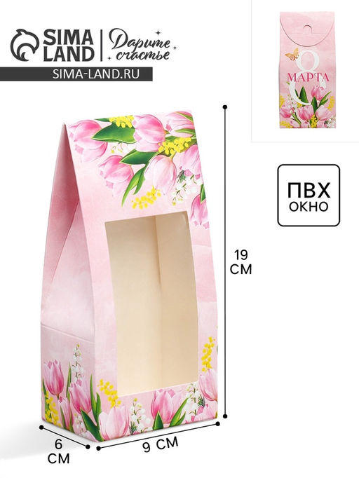 • Цена за 5 шт. Коробка кондитерская, упаковка, «8 Марта», 9 х 19 х 6 см