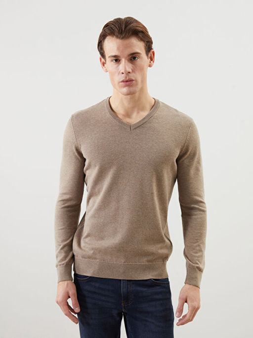 • V Yaka Uzun Kollu Erkek Triko Kazak