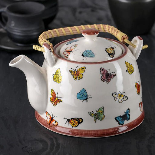 • Чайник керамический заварочный с металлическим ситом «Бабочки», 900 мл