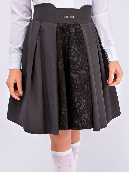Нарядная юбка - полусолнце, с широким поясом, съёмным подъюбником на пуговицах, декорирована гипюровой вставкой. Идеально сочетается с любой блузкой. Прекрасный выбор для интересного школьного образа.