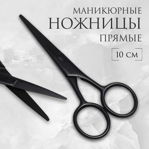• Ножницы маникюрные, широкие, прямые, матовые, 10 см, чёрные