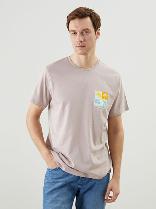 • Bisiklet Yaka K?sa Kollu Bask?l? Penye Erkek Ti??rt