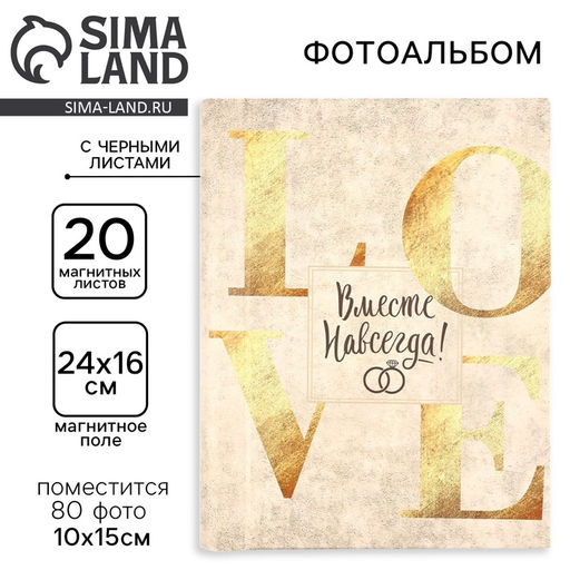 • Фотоальбом магнитный на 80 фото, 20 черных листов Вместе навсегда