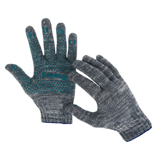 • Цена за 10 шт. Перчатки садовые, хб, вязка 7 класс, 6 нитей, размер 9, с ПВХ точками, серые, Greengo