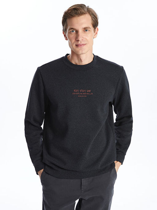 Bisiklet Yaka Uzun Kollu Nak??l? Erkek Sweatshirt