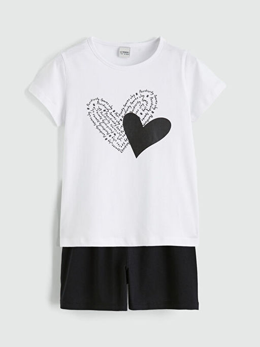 Bisiklet Yaka Bask?l? K?z ?ocuk Ti??rt ve ?ort