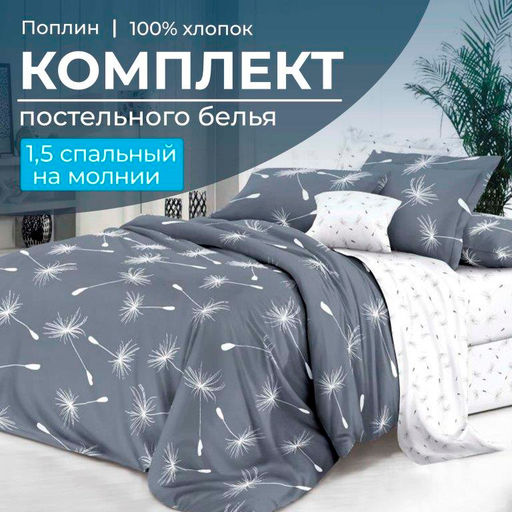 Артикул: Комплект постельного белья 1,5-спальный, на молнии, поплин (Пушинка)